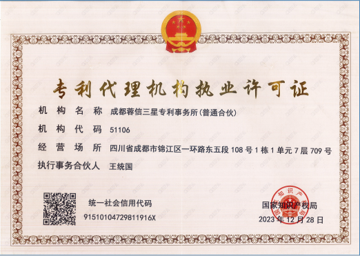 版权所有 © 成都蓉信三星专利事务所(普通合伙) 地址:德阳市岷江西路一段256号(德阳汇通大厦A栋1602)