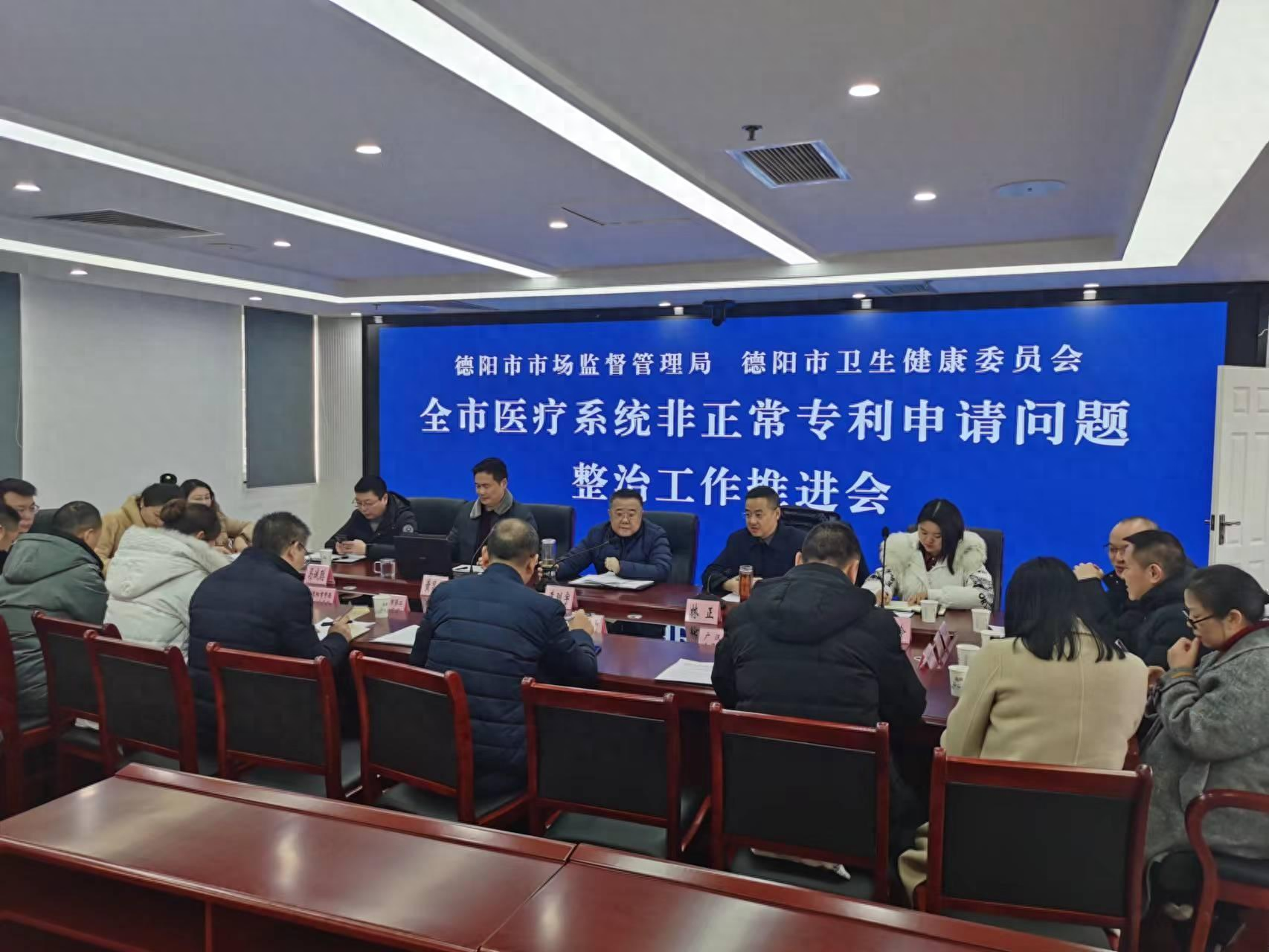 近日,为规范专利申请行为,降低非正常专利申请率,提升医疗行业的科研诚信水平,促进更多有价值的科研成果和发明专利产生,德阳市市场监督管理局和德阳市卫生健康委员会联合召开了全市医疗系统首次非正常专利申请问题整治工作推进会暨行政约谈会,此次会议以线下和线上相结合的方式同步进行,市、县(区)两级市场监管和卫健部门分管领导、业务科股室负责人和15家医院参加了约谈会。