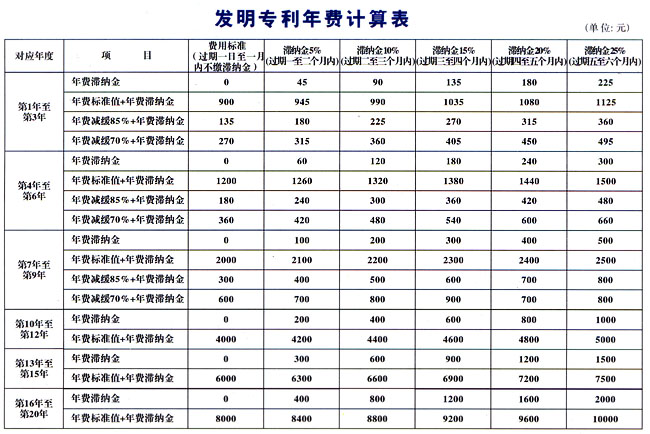发明专利年费计算表